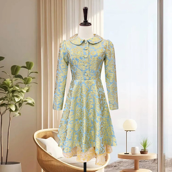 Vestido Jacquard de estilo chino para mujer con mangas largas Nuevo vestido de noche acampanado Cintura ceñida y fruncida Característica antiestática