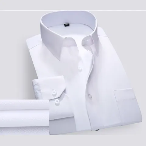 Camisa de vestir ajustada para hombre con cuello cuadrado Camisa de negocios clásica de manga larga en tela de sarga para la temporada de otoño